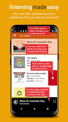 AudiobookSTORE.com audiobook app yana baka damar sarrafawa da sauraron littattafan sauti naka daga AudiobookSTORE.com. Haka kuma, zaka iya samun shirye-shiryen podcast sama da miliyan 100. Shiga cikin sauki da bayanan asusunka na yanar gizo don jin daɗi nan take.