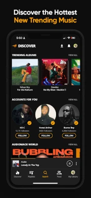 Barka da zuwa duniyar kiɗa mara iyaka tare da Audiomack, wata hanya ta musamman da za ta haɗa ka da sabbin waƙoƙi da masu tashe a duk faɗin duniya. Gano sabbin sauti daga manyan nau'o'in kiɗa irin su Hip-Hop, Rap, R&B, EDM, Afropop, da Reggae. Audiomack yana ba ka damar tsundumawa cikin waƙoƙin da suka fi zafi a yanzu, tare da fasalin "Trending" wanda ke nuna maka albums da waƙoƙin da suka fi jan hankali. Ka kasance na farko cikin abokanka wajen sanin abin da ke faruwa a duniyar kiɗa.