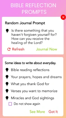 A rayuwar Kirista, cika zuciya da tunani da kalmar Allah wani abu ne mai matuƙar muhimmanci. Christian Journal - mood tracker, free gratitude journal and private Diary with a lock na gayyatarka ka shiga tafiya ta zurfin tunani da fahimtar littafi mai tsarki, inda za ka mai da hankali kan koyarwar Ubangiji. Yana taimaka maka wajen yin rubutu, tunani, da kuma zurfafa bincike kan ayoyin Littafi Mai Tsarki don gano abin da Allah ke ƙoƙarin koya maka. Ta hanyar haɗa zuciyarka da tunaninka da Maganar Allah, za ka samu ƙarfin bangaskiya, kwanciyar hankali, ƙarfafawa, da ingantacciyar rayuwar addu'a, wanda zai canza rayuwarka gaba ɗaya.