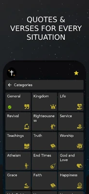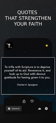 **Christian Scripture Quotes and Christian Quotes Offline** tana cike da tarin shafukan Littafi Mai Tsarki sama da 5000 da Kalamai na Kirista masu ban sha'awa. An raba su zuwa sassan daban-daban sama da 23, kamar su addu'a, soyayyar Allah, bege, juriya, da hikima. Kuna iya saita tunatarwa har sau 30 a rana don karɓar ayoyi da kalamai masu ban sha'awa, wanda ya haɗa da faɗakarwa ta musamman na kwana 365 da sabbin kalamai na Kirista kowace rana. Duk waɗannan kalmomi an zaɓe su ne da hannu daga fitattun Kiristoci, waɗanda suka dace da koyarwar Littafi Mai Tsarki na NIV, KJV, da NKJV. Kuma mafi mahimmanci, dukkanin abubuwan ciki suna aiki ba tare da intanet ba, suna ba ku damar samun ƙarfafawa a ko'ina, kowane lokaci.