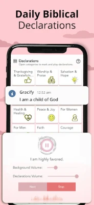 A cikin **Gracify Christian Meditation App**, zaka sami damar sabunta zuciyarka da ruhinka tare da **Furuci na Kirista na Yau da Kullum**. Waɗannan furuci suna tabbatar da bangaskiyarka kuma suna bayyana gaskiya a rayuwarka, suna taimaka maka ka mai da hankali kan abubuwan da ke sama. Za ka iya yin addu'a a kowace rana don kafa al'adar kusantar Allah, tare da tunatarwa don taimaka maka ka ci gaba da addu'a. Ta hanyar addu'a ta yau da kullun, za ka nemi ja-gora, ta'aziyya, da sabuntawa, wanda zai ƙarfafa dangantakarka da Allah kuma ya ba ka damar cin galaba kan zunubi da jaraba. Bugu da ƙari, shiga cikin lokuta na **Bimbini na Kirista na Yau da Kullum**, inda zaka sami nutsuwa da kwanciyar hankali a gaban Allah. Wannan zai baka damar ƙirƙirar wani wuri mai tsarki don haɗuwa, zurfafawa, da kuma mai da hankalinka kan alkawuran Allah.