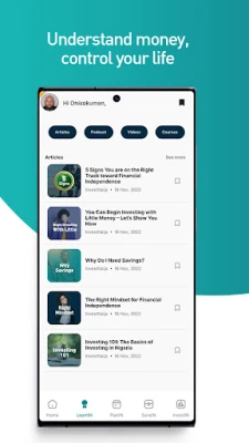 Baya ga damar saka hannun jari, InvestNaija yana kuma ba da kayan koyo na kudi ta hanyar LearnIN module. Wannan sashin yana gabatar da darussa, labarai, bidiyo, da kuma kwasfan fayiloli masu arziki a fannin kudi na sirri. An tsara shi don taimaka maka inganta iliminka na kudi da kuma ba ka damar yanke shawara mai inganci game da kudin ka. Ko kana sabon shiga ne ko kuma kana neman fadada iliminka, LearnIN yana da abin yi ga kowa da kowa.