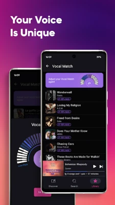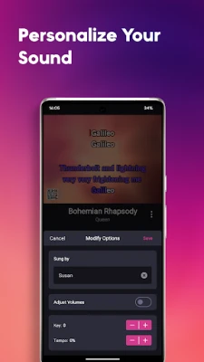 Kwarewar rera waƙa da KaraFun take bayarwa ba ta misaltuwa, tare da zama ba tare da tallace-tallace ba, sautin ingancin ɗakin studio, da kuma tarin waƙoƙi masu inganci. Za ka iya gano sabbin waƙoƙi da al'umma suka raba, har ma ka ji daɗin waƙoƙin da kake so ba tare da intanet ba. Baya ga rera waƙa, za ka iya tsunduma cikin duniyar tambayoyin waƙa, inda za ka iya kalubalanci abokanka don gwada iliminsu na kiɗa, tare da kowane kalubale yana ba da sabon salo da kuma kwarewa ta musamman. KaraFun yana ba ka damar sarrafa komai yadda kake so: daga daidaita tsayin waƙa da saurin tafiyarta, zuwa ƙarar kida da ta murya, har ma da keɓance sunan mai rera waƙar. Hakanan, za ka iya shirya zaman rera waƙar ka ta hanyar ƙirƙirar jerin waƙoƙi na musamman, ƙara waƙoƙi zuwa abubuwan da kake so, da kuma sarrafa jerin waƙoƙi cikin sauƙi. Kuma ta hanyar amfani da Vocal Match, za ka iya gano waɗanne waƙoƙi suka fi dacewa da muryarka.
