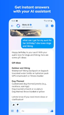 Ƙirƙiri kundin hotuna na bai ɗaya don adana abubuwan tunawa masu daraja, kamar hutu ko ranar haihuwa, tare da abokai da iyali a cikin hirarku. Aika manyan fayiloli har zuwa 100MB kai tsaye a cikin Messenger, ko takardu ne na Word, PDF, ko Excel, yana sauƙaƙa raba bayanai. Yi amfani da fasahar Meta AI, mataimakinka na sirri wanda zai iya amsa tambayoyinka, ba ka shawara, taimaka maka da aikin gida, har ma da ƙirƙirar hotuna masu ban mamaki. Raba lokutan yau da kullun a cikin Labarai, hotuna da bidiyo masu ɓacewa bayan awanni 24. Kuma kada ka manta rubuta rubutattun tunani masu sauri waɗanda ke ɓacewa bayan awanni 24, don ci gaba da haɗuwa da abokai.