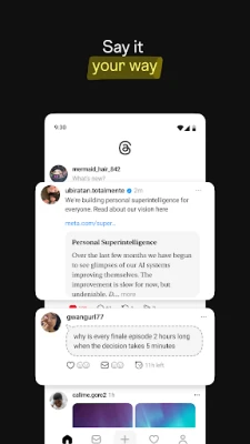 Threads wata sabuwar hanya ce mai cike da kuzari don haɗa kai da jama'a da kuma kasancewa cikin tattaunawa game da komai daga abubuwan da suka shafi yau da kullun zuwa sabbin salo masu tasowa. Wannan dandali na Meta yana ba da damar ku musayar ra'ayoyi, tunani, da fasaha tare da duniya, tare da gina al'ummar ku masu aminci. Ko menene sha'awar ku, za ku samu wuri don haɗuwa da masu ƙirƙira da abokai masu ra'ayi ɗaya, samun sabbin ilimi da ilham daga kwararru da kuma kasancewa kan gaba a kan abubuwan da ke faruwa a kowane lokaci. Daga shawarwarin fina-finai zuwa shawarwarin sana'a, Threads yana buɗe kofa ga ilimomin da aka samo daga tattaunawar jama'a, shugabannin tunani da masana.