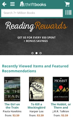 Tare da aikace-aikacen ThriftBooks, samun littattafai mafi kyau ya zama mai sauƙi. Shin akwai wani littafi da kake so amma yanzu babu shi? Za mu sanar da kai nan take da zaran ya dawo cikin hannun jari. Zaka iya amfani da na'urar daukar hoton barcode don bincika farashi kai tsaye da kuma samuwa a duk inda kake. Hakanan, za ka ji daɗin jigilar kaya kyauta a cikin Amurka ga duk odar da ta haura $15, an shirya su cikin marufi masu dorewa. Ga masu amfani da ke da asusun ThriftBooks, shiga cikin sauƙi don samun damar jerin abubuwan da kake so, hanyoyin biyan kuɗi, da adireshin jigilar kaya, tare da ganin shawarwari na musamman da aka tsara daidai da sha'awarka.