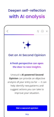 Tare da **Unstuck**, za ku gano sabbin abubuwan fahimta game da yadda tunaninku ke canzawa a tsawon lokaci. Aikace-aikacen yana ba da nazari na musamman don ku gane tarkon tunani da kuka shawo kansu da waɗanda har yanzu kuke fuskanta. Fasahar 'AI Second Opinion' ba chatbot ba ce kawai; tana ba da cikakken nazari na littafin tunaninku, yana bayyana tarkon tunani da kuma ba ku sabon hangen nesa. Haka kuma, 'AI Fear Finder' yana taimakawa wajen gano asalin tsoro don ku iya fuskantarsu yadda ya kamata. Ko kuna son yin amfani da shi akan wayarku yayin tafiya ko kuma akan kwamfutarku don rubuta abubuwa da yawa, **Unstuck** yana samuwa a duk na'urori. Yana da zaɓi na 'Dark Mode' don ta'aziyyar idanunku, kuma yana kiyaye bayananku tare da ajiya ta atomatik. **Unstuck** yana ba da damar gwaji kyauta, kuma yana da tsare-tsare na tallafi ga waɗanda ke fuskantar ƙalubale na kuɗi. Muna maraba da ra'ayoyinku a kowane lokaci; zaku iya tura su zuwa